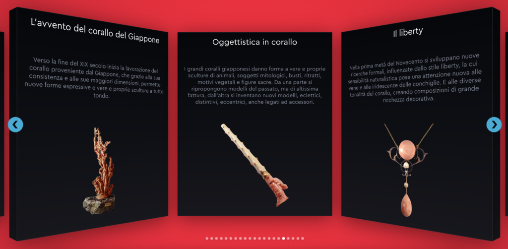 In un tavolo “sociale” saranno alloggiati i dispositivi e creare delle postazioni individuali con sedute per i visitatori. e i banchi per la lavorazione del corallo e del cammeo ricostruiti in 3D, le fasi della lavorazione del corallo e del cammeo.