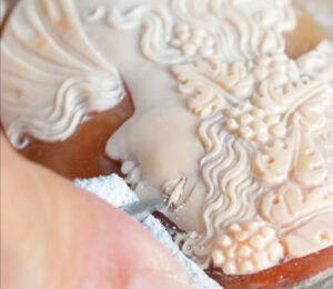 L’incisione su cammeo condivide alcune fasi produttive con quella del corallo. Sfruttando le possibilità cromatiche di diversi tipi di conchiglie si possono ottenere molte soluzioni espressive. Gli strumenti di lavorazione moderni, pur avendo accelerato e reso meno faticosi i procedimenti, non hanno modificato nella sostanza una lavorazione antica.